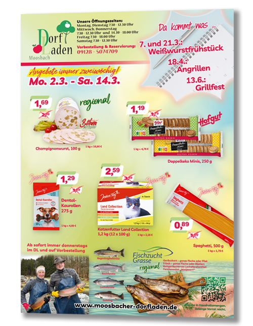 Bei uns gibt es nicht nur unverwechselbaren Genuss aus der Region. Wir haben auch tolle Preisangebote. Schau doch mal rein ... Dein Dorfladen-Team erwartet dich!