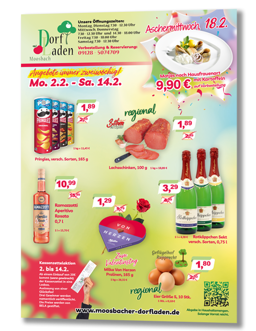 Bei uns gibt es nicht nur unverwechselbaren Genuss aus der Region. Wir haben auch tolle Preisangebote. Schau doch mal rein ... Dein Dorfladen-Team erwartet dich!